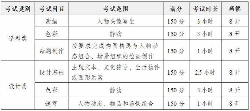 (一)考試科目一:素描(滿分:150分)